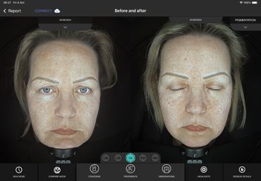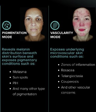 • Pigmentation – Highlights common skin tone irregularities such as sun damage, pigmentation, melasma, and general color variations.
